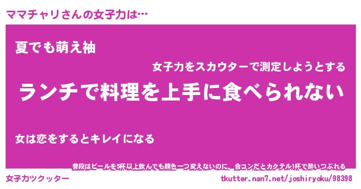 | ファンタジー風あだ名 | 『ママフェル』『エターナルママチャリー』 |