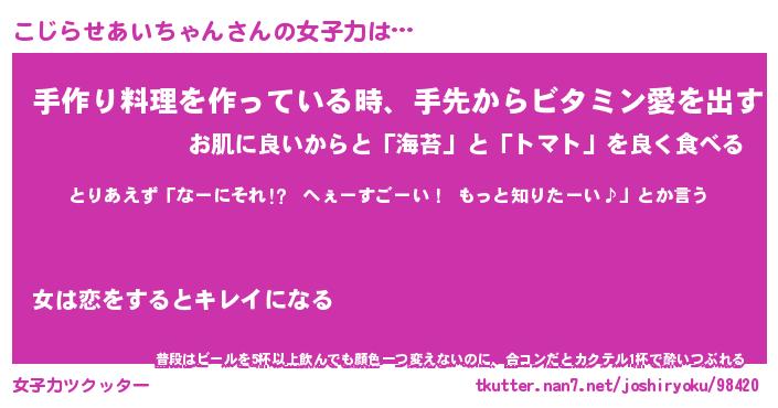 | ヘコむあだ名 | 『こじふぇ~』『つくし』『こじお』 |