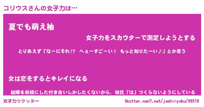 | ファンタジー風あだ名 | 『コリフェル』『エターナルコリウスー』 |