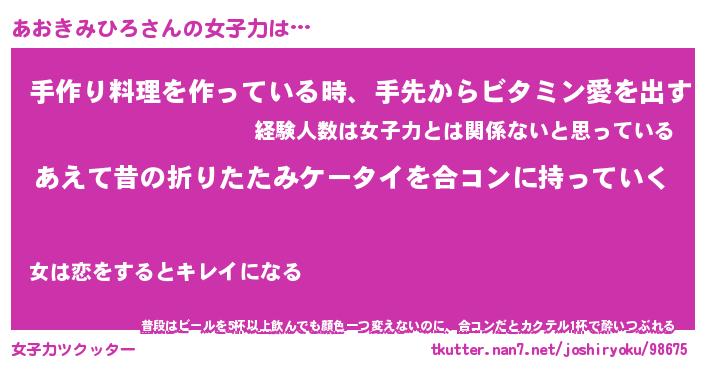 | ヒーロー風カッコイイあだ名 | 『スーパーアオキミヒロ』『黄金騎士アオ』 |