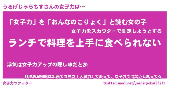 | ヘコむあだ名 | 『うるにゅー』『つくし』『うる太郎』 |