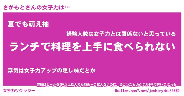 | 恥ずかしいあだ名 | 『プリティーさかもと』『さかっちょ』 |