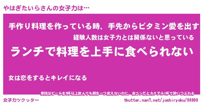 | ヘコむあだ名 | 『やはふぇ~』『つくし』『やはっ子』 |
