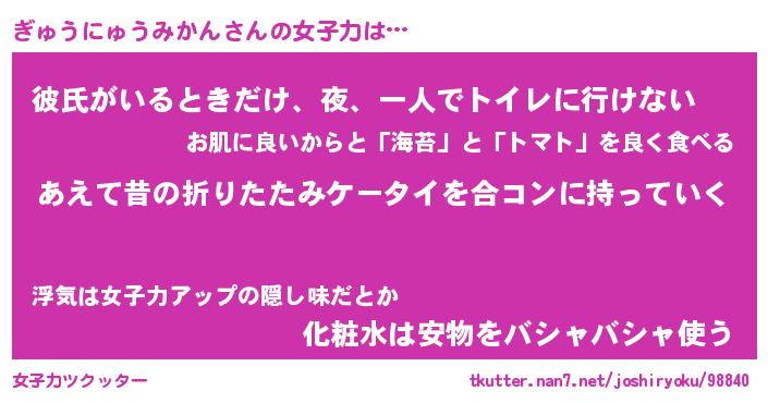 | ツイッター | ぎゅうにゅうみかんさんのツイッターID『kikurage_star』 |