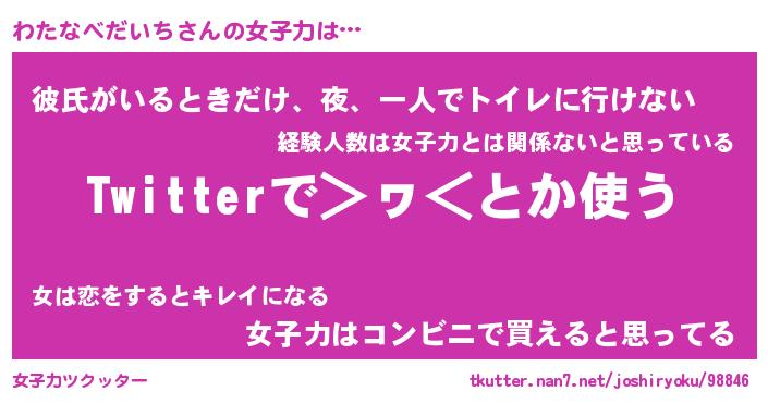 | ヘコむあだ名 | 『わたふぇ~』『豆乳』『わたぷりん』 |