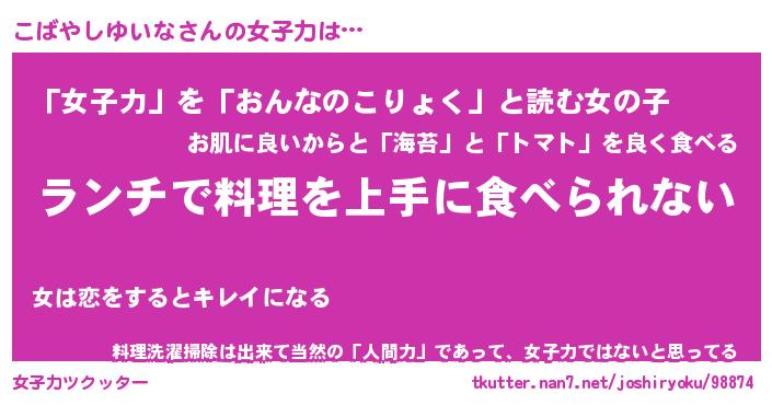 | 恥ずかしいあだ名 | 『プリティーこばやしゆいな』『こばちん』 |