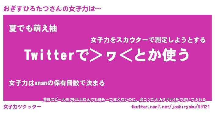 | 男性向けラノベタイトル風あだ名 | 『おぎすひろたつの憂鬱』 |