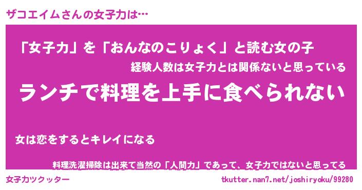 | ファンタジー風あだ名 | 『ザコフェル』『エターナルザコエイムー』 |