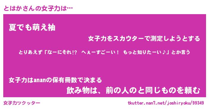 | ヘコむあだ名 | 『とはにー』『なまこ酢』『とはを』 |