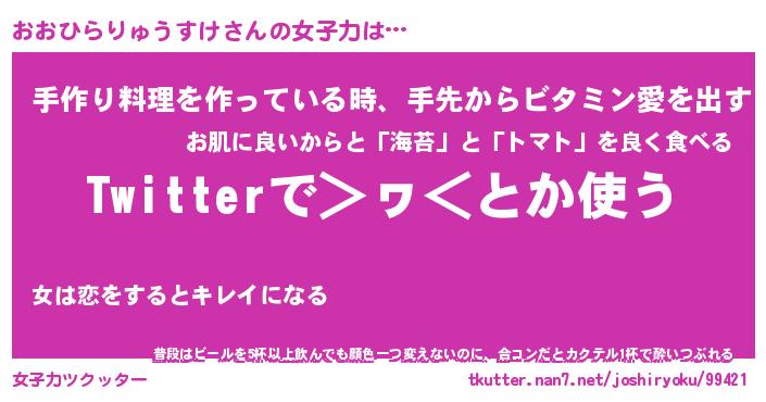 | 肩書あだ名 | 『おおひらりゅうすけ御曹司』 |