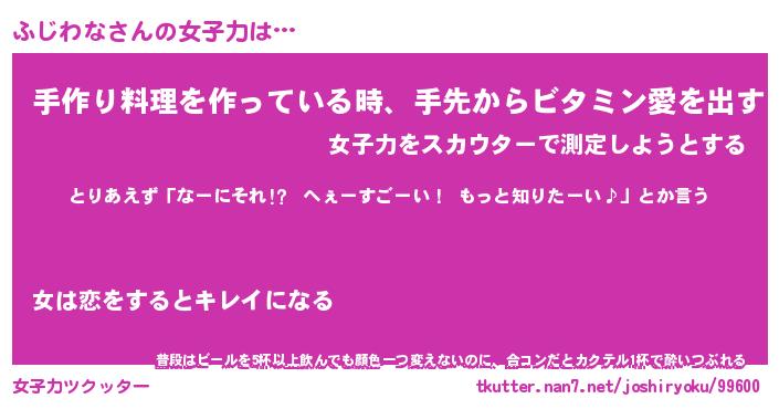 | ヘコむあだ名 | 『ふじっふぃ~』『つくし』 |