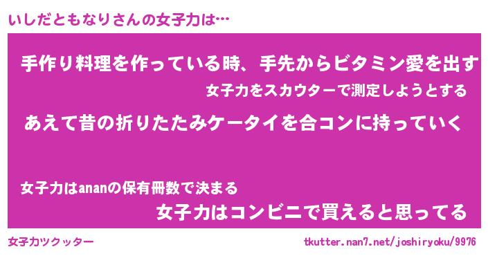 | ヒーロー風カッコイイあだ名 | 『スーパーイシダトモナリ』 |