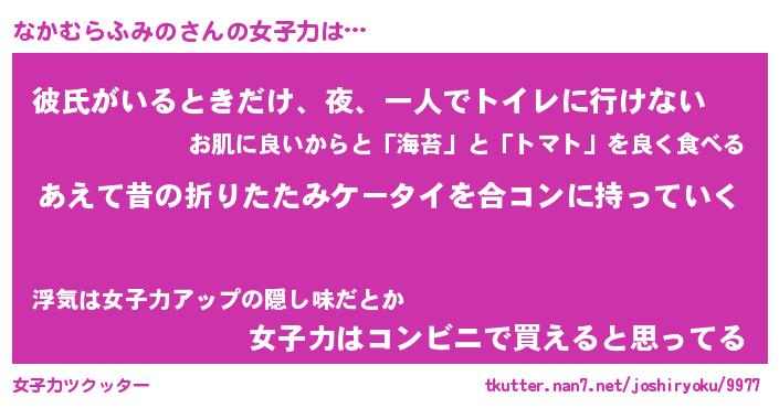 | 男性向けラノベタイトル風あだ名 | 『なかむらふみのの憂鬱』 |