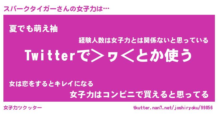 | 男性向けラノベタイトル風あだ名 | 『スパークタイガーの憂鬱』 |