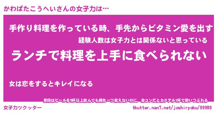 | 肩書あだ名 | 『かわばたこうへいCEO』 |