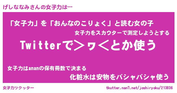 | ポケモン風あだ名 | 『ゲシチュウ』『ゲシナダネ』 |