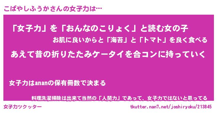 | 胡散臭い通販商品みたいなあだ名 | 『必ず成功するブレスレット…その名も「こばやしふうか」』 |