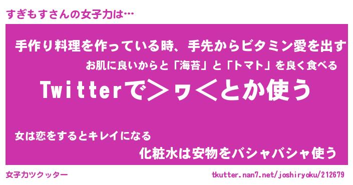 | ヘコむあだ名 | 『すぎにゅー』『つくし』『すぎっ子』 |