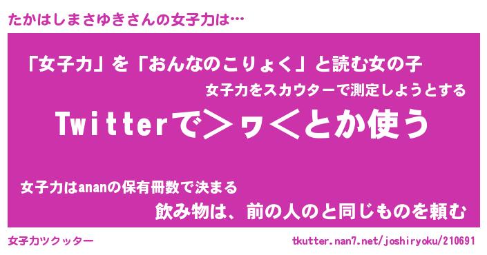 | 女子向けラノベタイトル風あだ名 | 『たかはしまさゆき姫と円卓の騎士』 |
