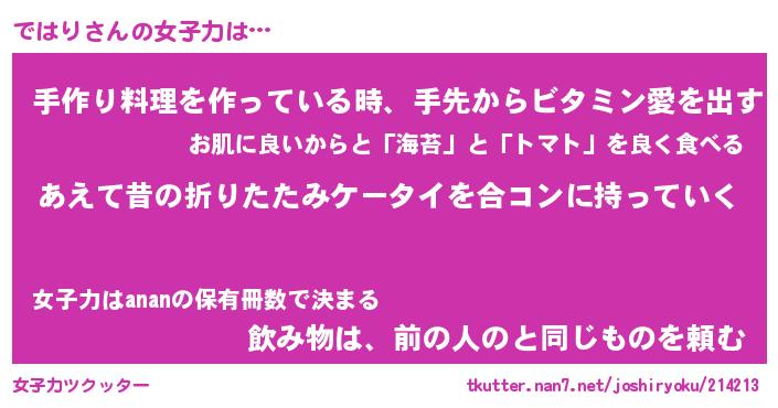 | (((^_^;)(((^(略 …「あかさたなはまやらわ」 | 2月13日 08:59 |