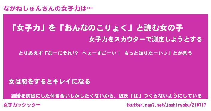 | ヘコむあだ名 | 『なかにゅー』『牛乳』『なかっちょ』 |