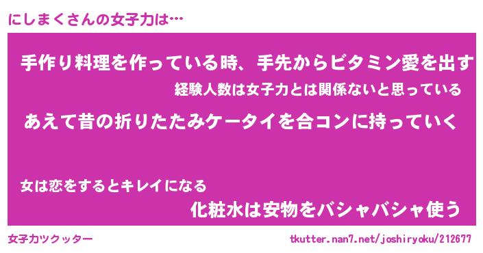 | ファンタジー風あだ名 | 『ニシフェル』『エターナルニシマクー』 |