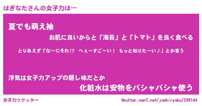 | ヘコむあだ名 | 『はぎもー』『なまこ酢』 |