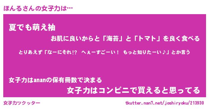 | ヘコむあだ名 | 『ほんふぇ~』『なまこ酢』『ほんお』 |