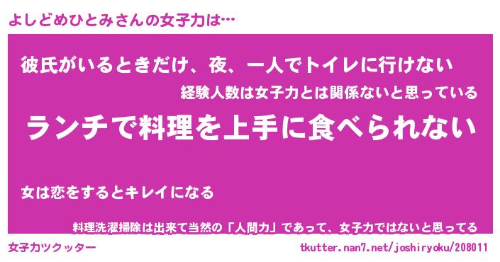 | ヘコむあだ名 | 『よしふぇ~』『豆乳』『よしっぺ』 |