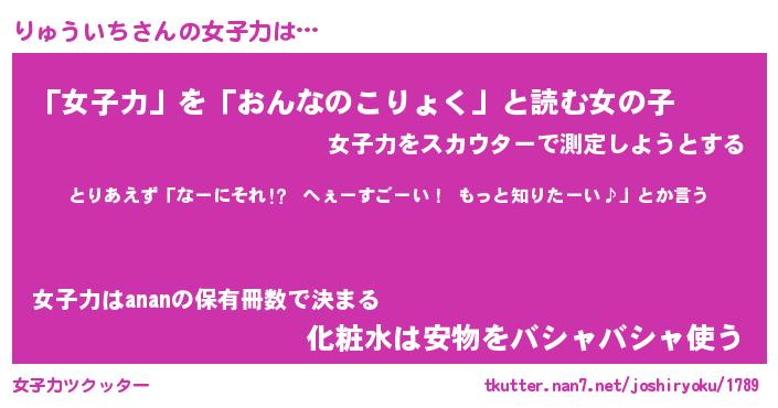| ファンタジー風あだ名 | 『リュフェル』『エターナルリュウイチー』 |
