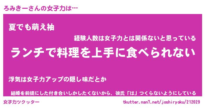 | 意味不明あだ名 | 『ペロリンろみきー』『永久保存ろみきー』 |