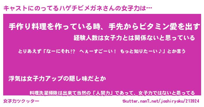 | 料理風あだ名 | 『節約★キャストにのってるハゲチビメガネと油揚げの玉子丼』 |