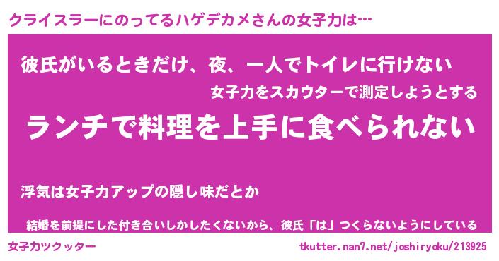 | 胡散臭い通販商品みたいなあだ名 | 『億万長者になれるブレスレット…その名も「クライスラーにのってるハゲデカメ」』 |