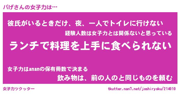 | 男性向けラノベタイトル風あだ名 | 『パゲアートオンライン』 |