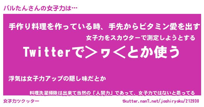 | ヘコむあだ名 | 『パルにー』『つくし』『パルっぺ』 |