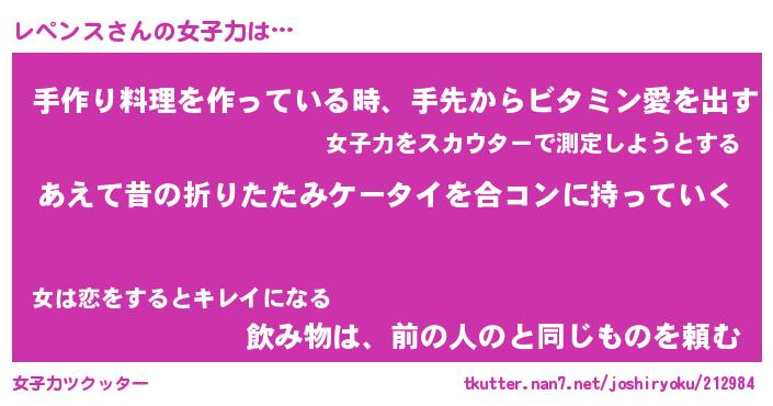 | 男性向けラノベタイトル風あだ名 | 『レペンスの憂鬱』 |