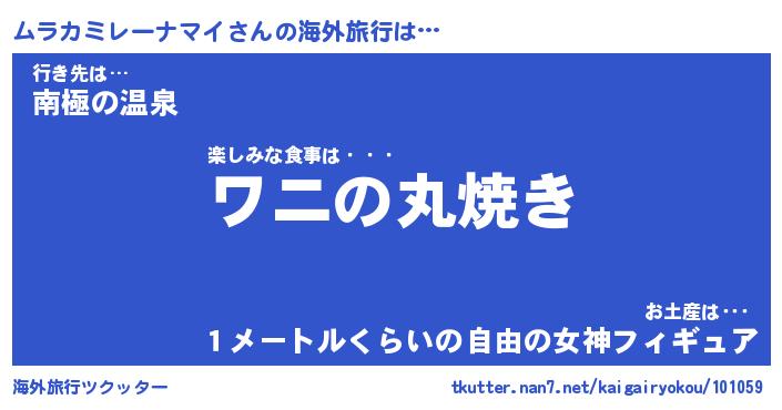 | 欧米人風あだ名 | 『マイケルムラカミレーナマイ』 |