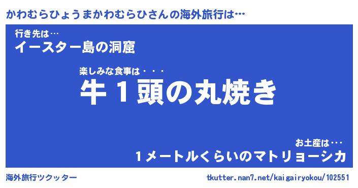 | ツイッター | かわむらひょうまかわむらひさんのツイッターID『dendenmushi_nyan』 |