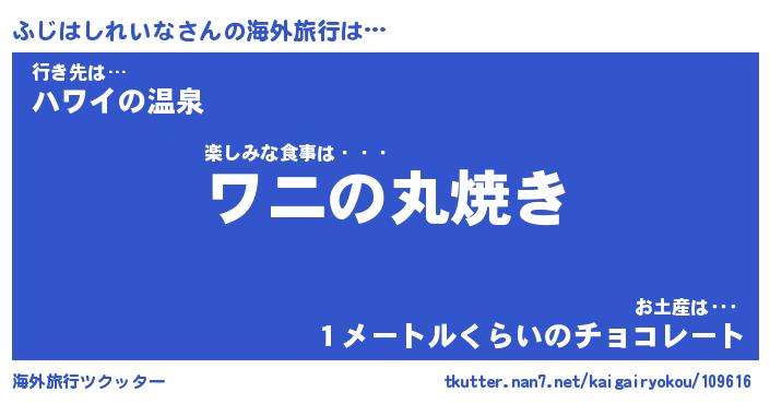 | 欧米人風あだ名 | 『マイケルふじはしれいな』 |