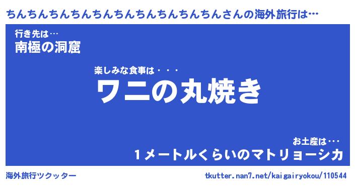 | ツイッター | ちんちんちんちんちんちんちんちんちんちんさんのツイッターID『kikurage_idle』 |