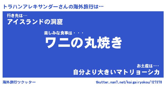 | 女子向けラノベタイトル風あだ名 | 『(仮)トラハンアレキサンダーのやんごとなき事情』 |