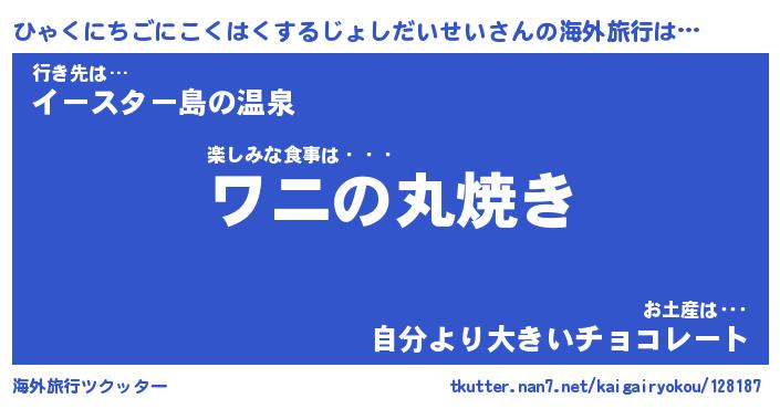 | 欧米人風あだ名 | 『マイケルひゃくにちごにこくはくするじょしだいせい』 |