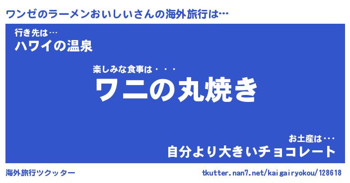 | 欧米人風あだ名 | 『マイケルワンゼのラーメンおいしい』 |