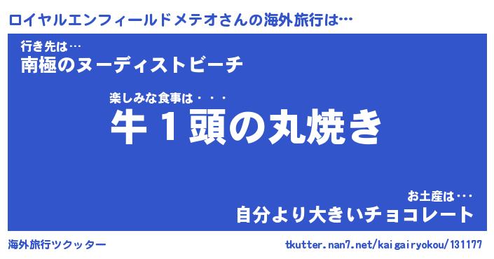 | 料理風あだ名 | 『節約★ロイヤルエンフィールドメテオと油揚げの玉子丼』 |