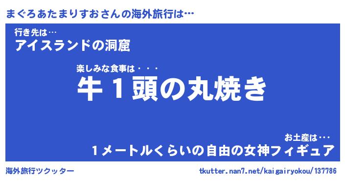 | 欧米人風あだ名 | 『マイケルまぐろあたまりすお』 |