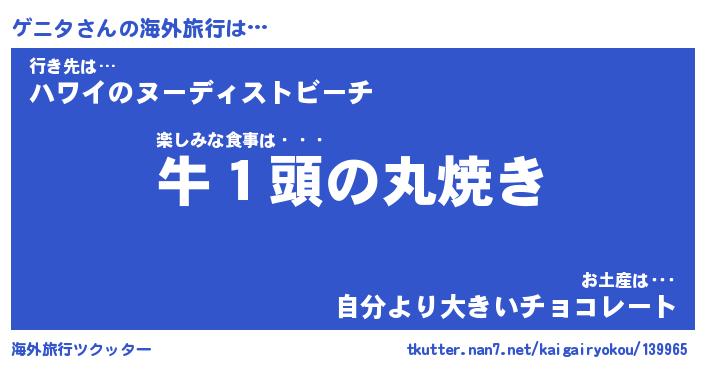 | 欧米人風あだ名 | 『マイケルゲニタ』『ゲニタクリステル』 |