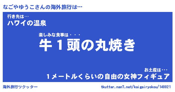 | 男性向けラノベタイトル風あだ名 | 『ナゴヤユウコアートオンライン』 |