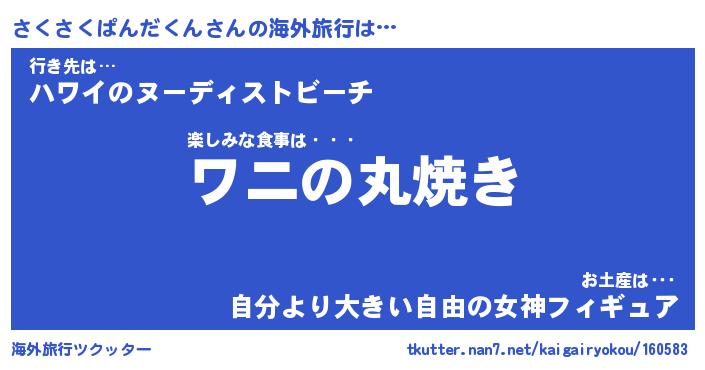 | 男性向けラノベタイトル風あだ名 | 『さくさくぱんだくんの憂鬱』 |