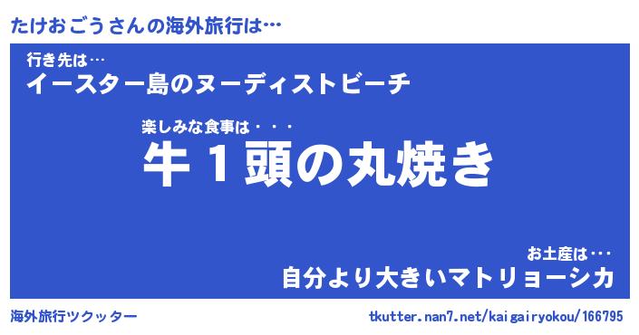 | ファンタジー風あだ名 | 『タケフェル』『エターナルタケオゴウー』 |