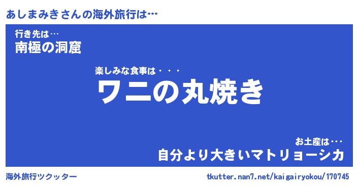 | 胡散臭い通販商品みたいなあだ名 | 『必ず成功するブレスレット…その名も「あしまみき」』 |